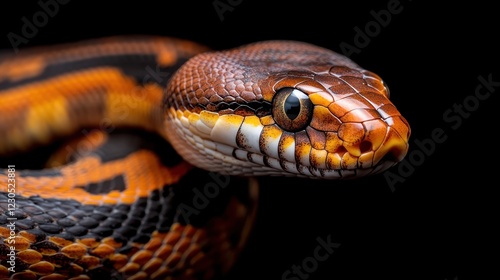 A detailed close-up image of a brown and orange snake, showcasing the stunning scale patterns and features, highlighting the beauty and uniqueness of reptiles in nature.