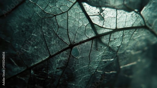 A detailed close-up of a leaf against a dark backdrop, showcasing its intricate structure.