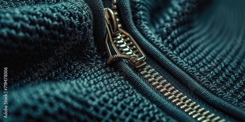 A detailed close-up of a zipper on a sweater. Perfect for fashion or textile-related projects