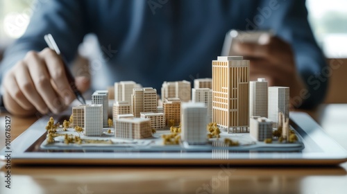 A detailed conceptual model that effectively showcases various aspects of urban planning, integrated digital cadastral systems, as well as contemporary construction activities in modern cities