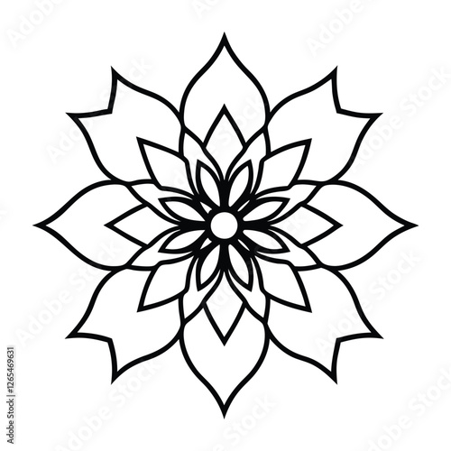 A detailed henna tattoo featuring a symmetrical flower mandala design with intricate patterns, swirling lines, and delicate petals, creating a beautiful, ornamental look.