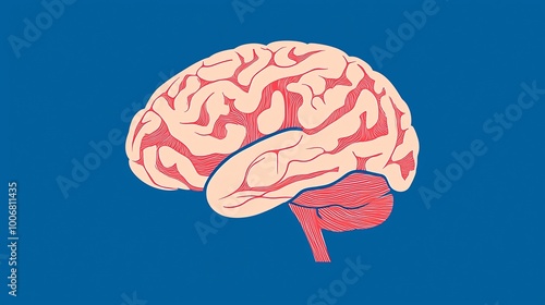 A detailed illustration of a human brain, showcasing its intricate structure and design against a vibrant blue background.