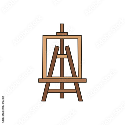 A detailed illustration of a wooden easel, designed for painting and displaying artwork.