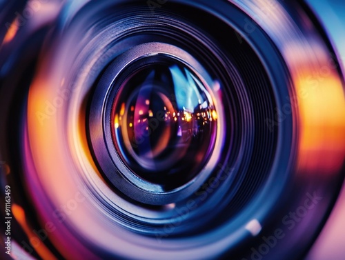 A detailed image of a camera lens showing its inner mechanics and precision engineering