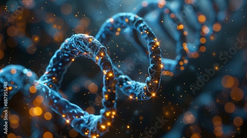 A detailed image of a DNA double helix, showcasing its intricate structure and complex composition.