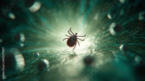 A detailed macro view of a tick against a protective light barrier, highlighting its menacing form.