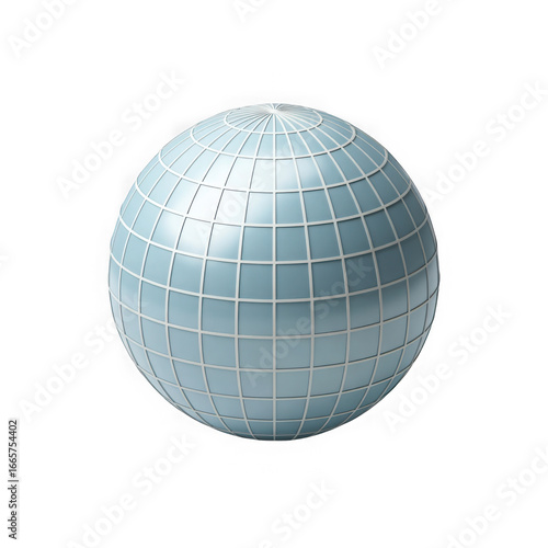 A detailed realistic 3d rendering of a light blue globe with visible continents and grid lines isolated on transparent background