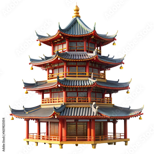 A Detailed Rendering of a Traditional Chinese Pagoda