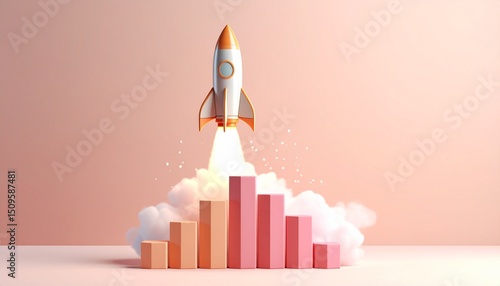 A detailed rocket launches above the bar graph, resembling a real rocket launch into space.