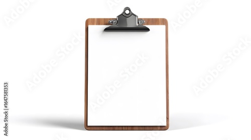 A detailed shot of an empty clipboard on the desk