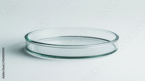 A detailed side profile of a glass petri dish with precise features, isolated on a clean white background for a minimalist and professional look