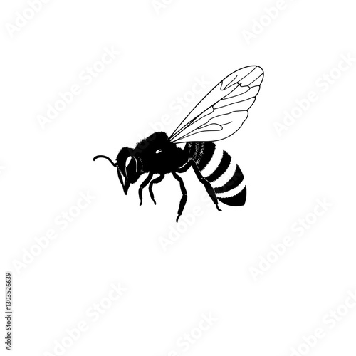 A detailed vector illustration of a single bee silhouette features and graceful, elegant form.