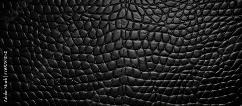 A detailed view capturing the intricate pattern on a black leather surface, showcasing its texture and design