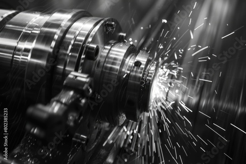 A detailed view of a machine emitting sparks. Suitable for industrial concepts