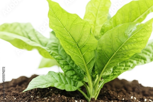 A detailed view of a small plant growing in the ground, surrounded by soil and possibly a few rocks