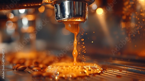 A detailed view of milk being poured into espresso, highlighting the swirl and mixing patterns. Warm, inviting lighting highlighting the scene, with a slightly blurred cafe background.