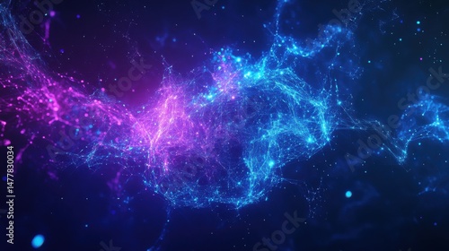 A digital abstract background with glowing blue and purple connections forms the shape of an AI brain on a dark gradient, ideal for tech presentations and social network banners.