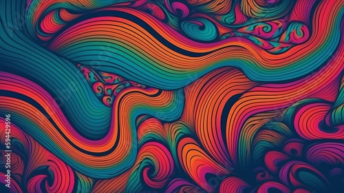 A digital background illustration of vibrantly colored swirls and waves. Generative AI.