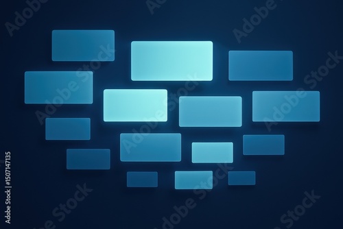 A digital business strategy is illustrated through glowing data tiles symbolizing decision making innovation and efficient workflow in a modern environment