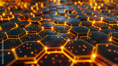 A digital honeycomb grid with glowing orange nodes connected by thin, shimmering lines