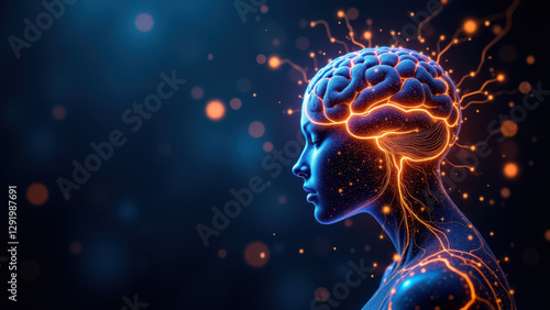 A digital illustration featuring a humanoid figure with an illuminated brain, symbolizing advanced artificial intelligence.