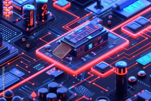 A digital illustration of a smart factory with holographic interfaces and data analytics, ideal for a cyber industry banner with space for copy