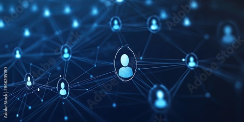 A digital illustration of social network connections with icons and data points, representing the power to connect people across different platforms in business Generative AI