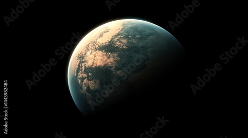 A digital rendering of an earth-like planet set against a dark void, evoking a sense of cosmic exploration