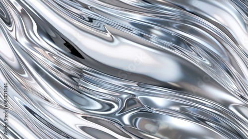A digital rendering of smooth metallic liquid, flowing in an abstract wave pattern with light reflections SEAMLESS PATTERN