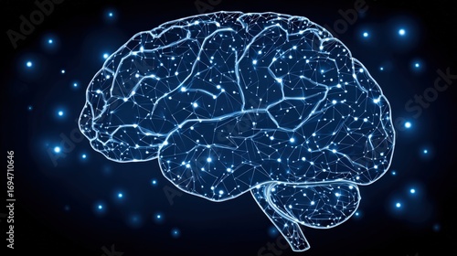 A digital representation of a brain, illuminated with blue lights and interconnected lines, symbolizing intelligence and neural connections.