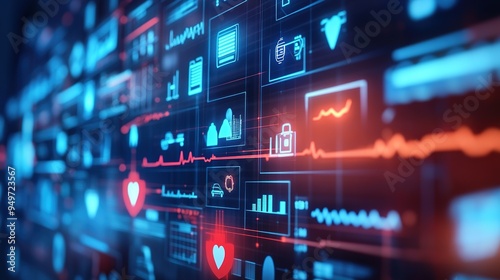 A digital representation of various insurance products available online, displayed on a large screen.