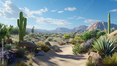 A digital simulation of a desert ecosystem highlighting species adaptations and survival strategies