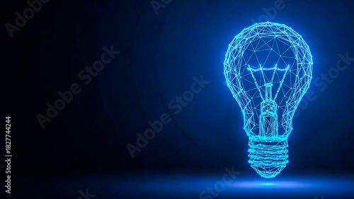 A digitally rendered light bulb composed of intricate blue glowing lines and interconnected dots, symbolizing innovation, bright ideas, and technological a future technology concept.