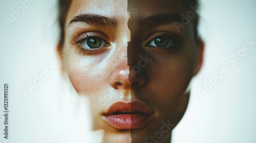 A distorted mirror reflection where the face doesn't match the person, creating an uncanny yet artistic effect