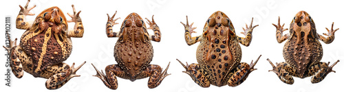 A diverse arrangement of frogs showcasing unique patterns and colors.