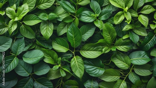 A diverse assortment of lush green leaves thriving in summer showcasing vibrant textures and shades of nature's foliage.