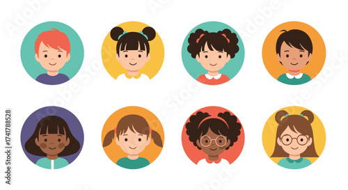 A Diverse Collection of Children's Avatars Representing Various Ethnicities and Genders.