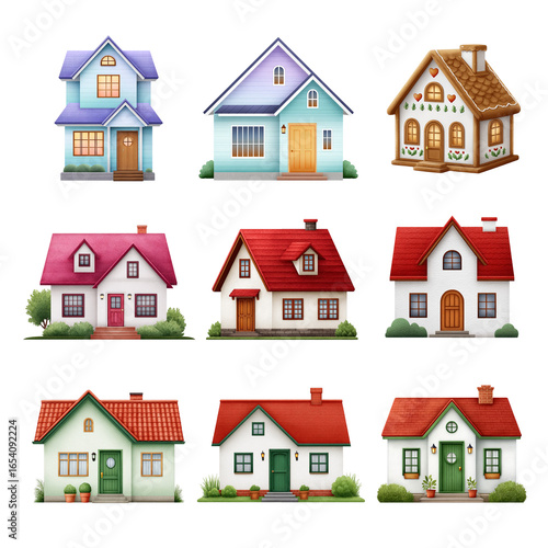 A diverse collection of colorful and charming house illustrations. House isolated on white background, Transparent Background