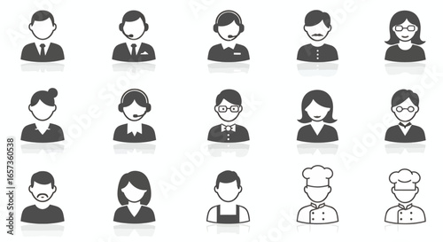 A diverse collection of vector avatar icons, showcasing various professions and styles, perfect for web design and user interface elements, presented in a clean style.