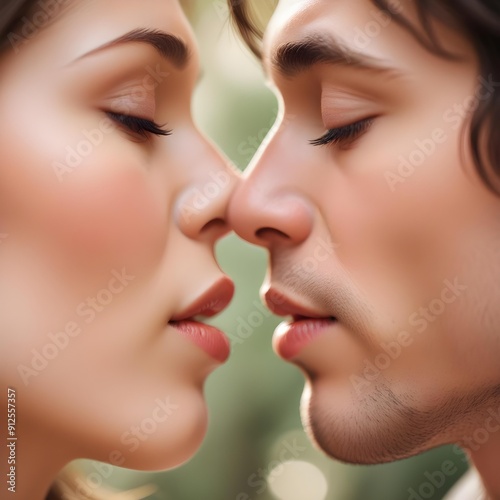 A diverse couple about to kiss