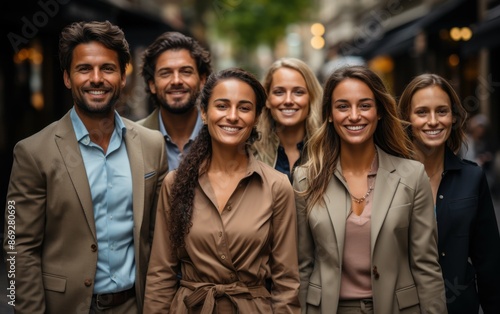 A diverse group of stylish and confident individuals pose together in an urban setting