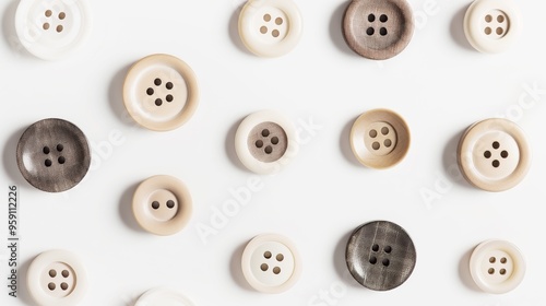 A Diverse Selection of Round Wooden Buttons in Various Sizes and Shades of Brown on a White Background for Crafting