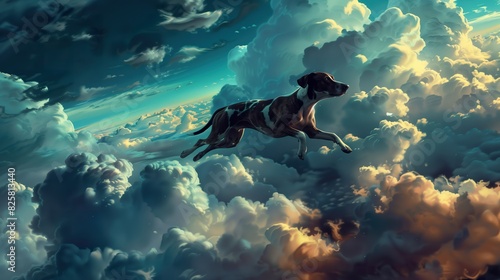 A dog flying in the heaven