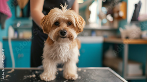 A dog getting its fur trimmed at a groomer