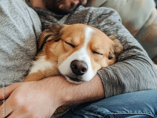 A dog resting its head on its owner's lap, showing love and loyalty as they relax together.