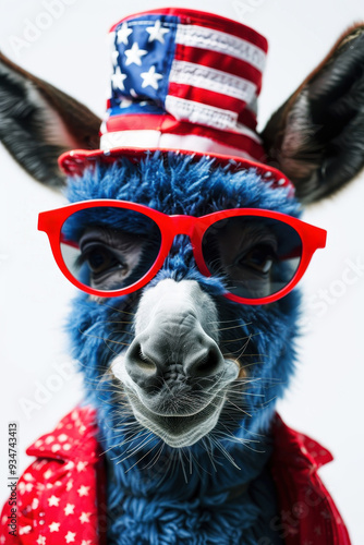 A donkey wearing a USA top hat a symbol of the Democratic political party.