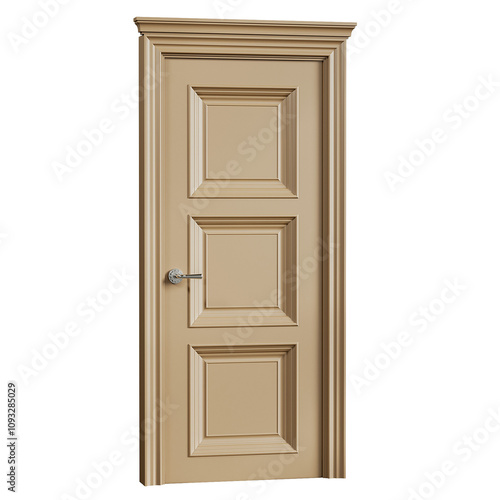 A door with three panels and a silver handle