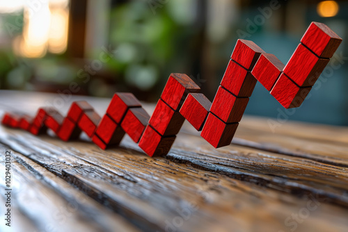 A downward-trending line graph made out of dominoes, symbolizing the chain reaction of financial crises. Concept of business.