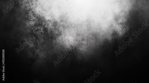 A dramatic black and white abstract background with a misty, smoky texture.