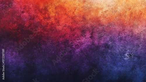A dramatic gradient background blending dark grainy tones of purple, red, orange, and blue, with a subtle texture for depth